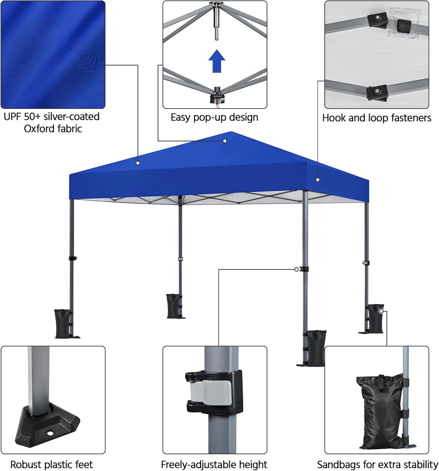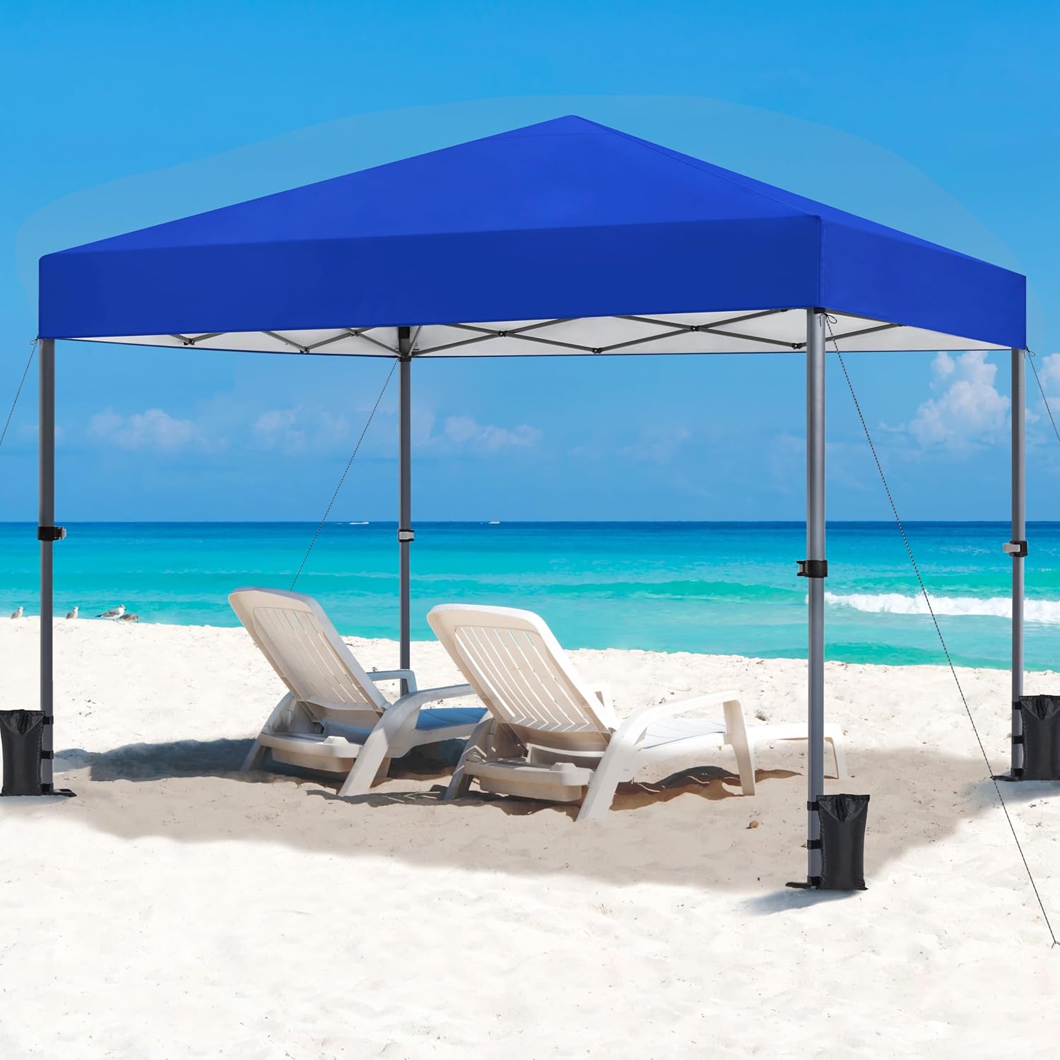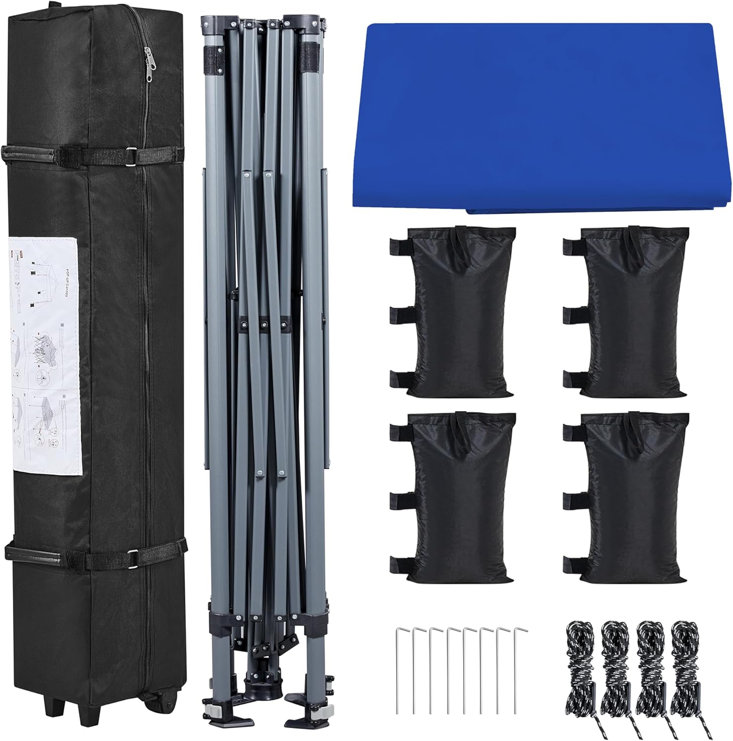Yaheetech 10×10 1-Person Setup Pop Up Canopy Tent, Instant Portable Commercial Canopy Tent, Outdoor Gazebo with 1-Button Push, Wheeled Bag & 4 Sandbags for Home, Party & Outdoor Activities, Blue